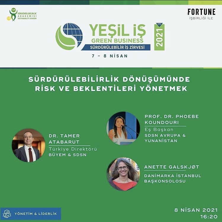 Sürdürülebilirlik Akademisi tarafından sekizincisi düzenlenen Yeşil İş 2021 Zirvesi’nde, Boğaziçi Yaşamboyu Eğitim Merkezi ve UN SDSN Türkiye Direktörü Dr. Tamer Atabarut’un moderatörlüğünde “Sürdürülebilirlik Dönüşümünde Riskleri ve Beklentileri Yönetmek” oturumu gerçekleşecektir.